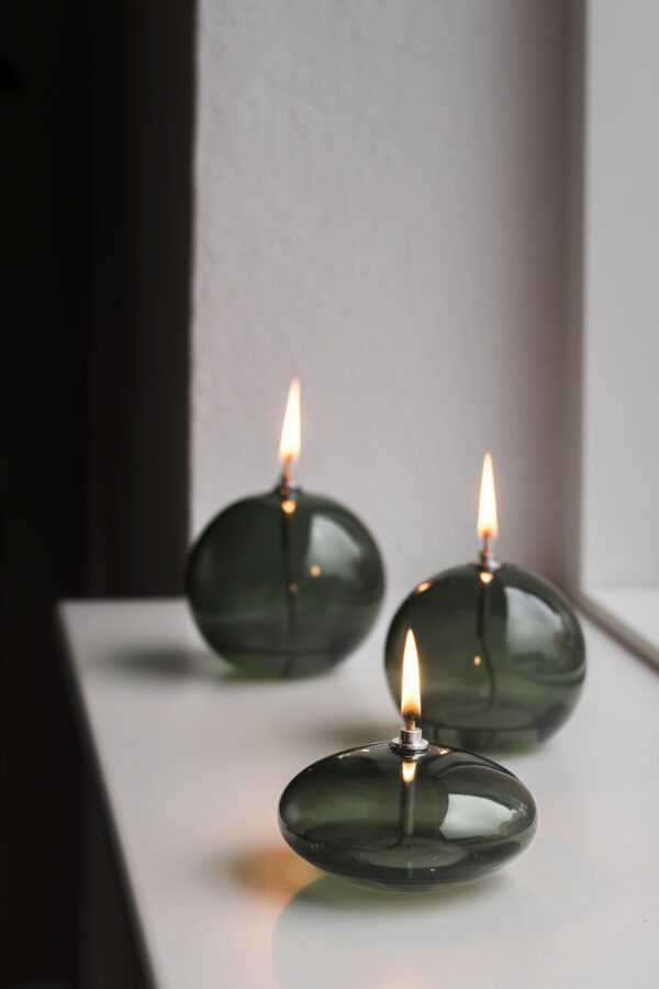 Lampeolie medfølger ikke, men det anbefales at anvende en lugt- og sodfri bio lampeolie, som er med til at bibeholde et sundt og rent indeklima. Denne kan fås i de fleste byggemarkeder. Der medfølger en glastragt til let påfyldning af lampeolie.